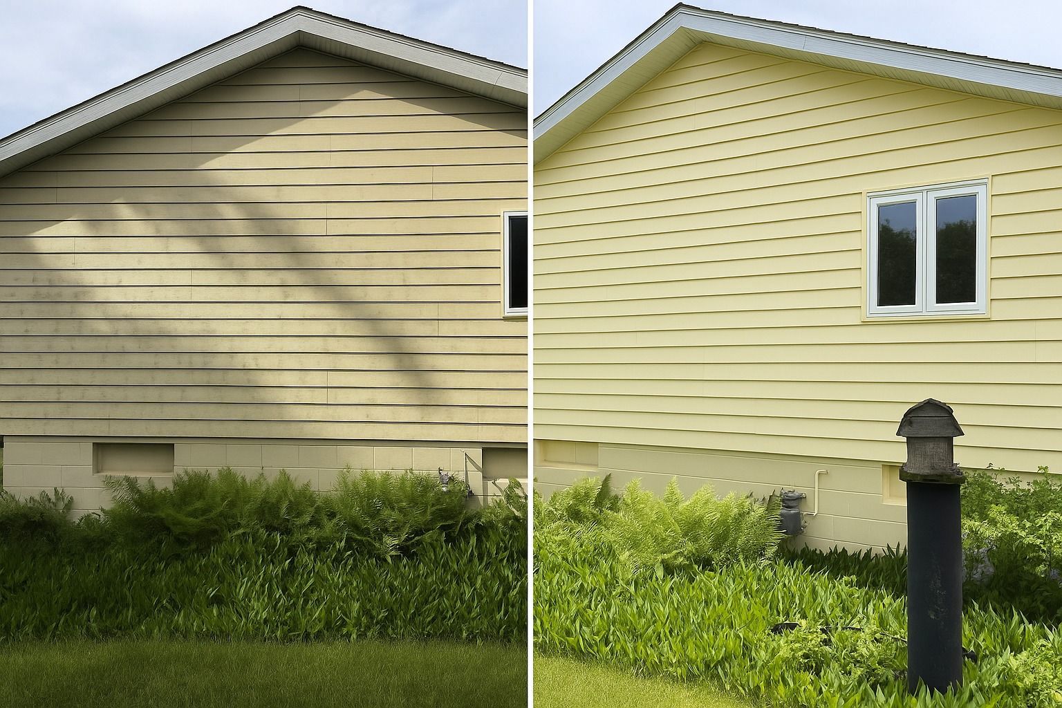 Eazy Wash uses soft washing and controlled pressure methods to clean vinyl, wood, fiber cement, and other siding materials without causing damage. The process removes mold, mildew, dirt, and oxidation that dull your home's appearance and can degrade siding over time. After the wash, your home looks brighter, colors return to their original tone, and the surface feels smooth instead of gritty or slimy.